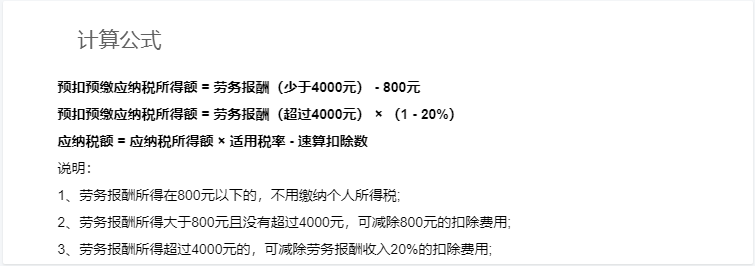 4、关于个人所得税国家的相关规定(收入类型:劳务报酬)
